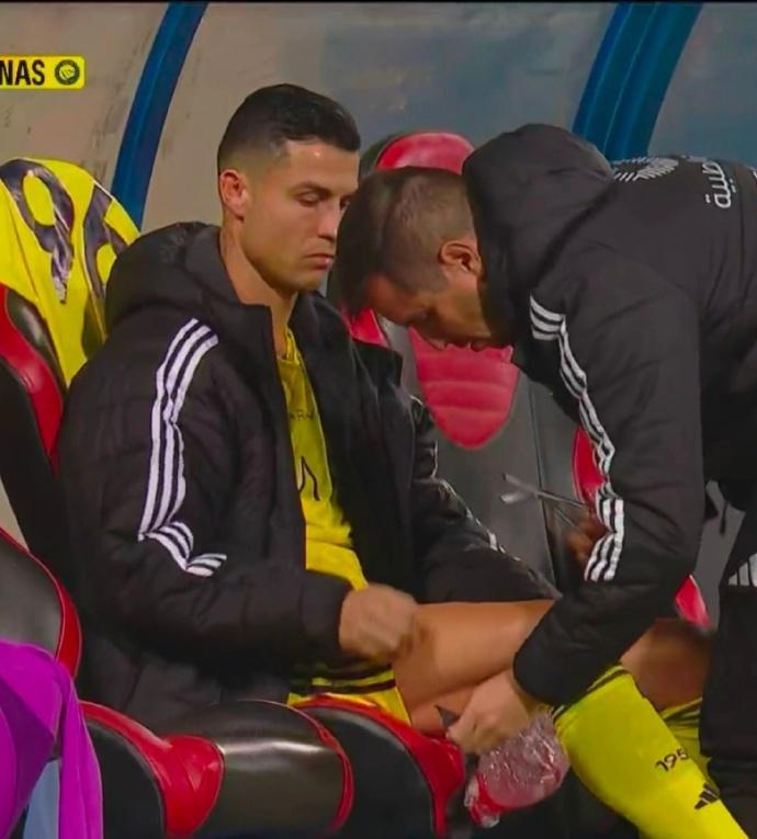 不仅如此,C罗还在第81分钟因为腿筋拉伤,黑着脸被换下场。下场后,C罗更是不得不在替补席用冰袋冷敷大腿,显然连续作战让身体素质惊人的C罗也扛不住了。